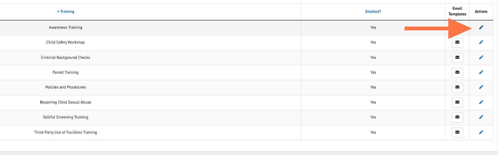 - Click the ‘Action’ button to the right of the Training you would like to automatically renew.