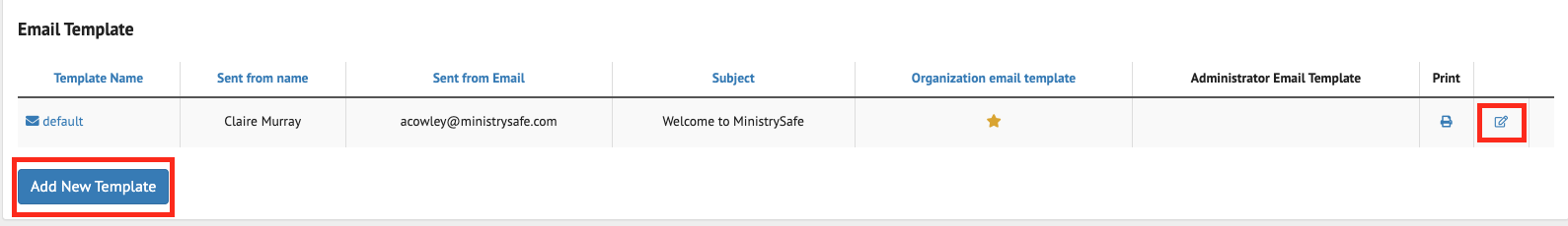 - Click ‘Add New Template’ to create your own template, or click the edit button to update the default template.