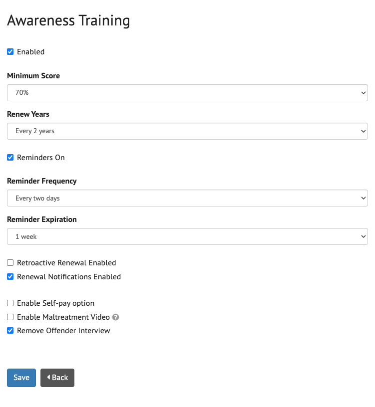 - Here you may enable or disable reminders, or edit the reminder frequency and expiration period.