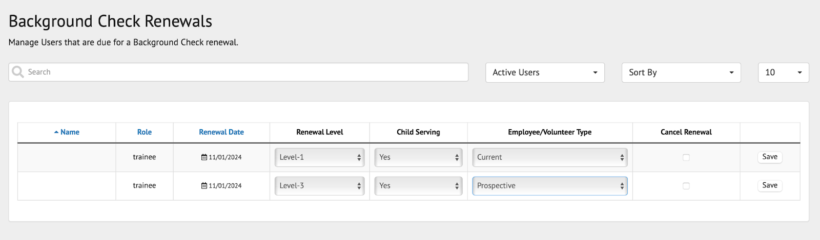 The Control Panel will notify all Safety System Administrators two weeks before the Background Check renewal date. If you need to make any changes to the level or cancel the renewal, please follow the steps below: