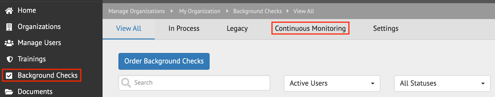 - In the ‘Background Checks’ tab of your Control Panel, click ‘Continuous Monitoring.’